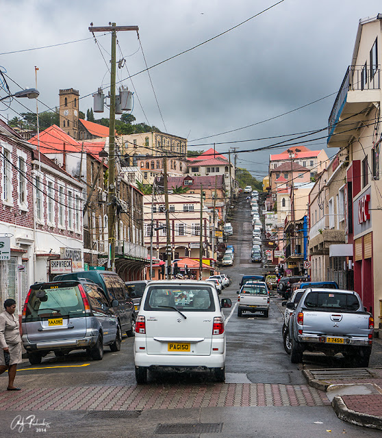 SO MANY of these very small Caribbean Islands (a number of them, nations; others, territories of larger nations), away from the commercial cruise ports, are generally quite poor and depressed. At one time almost wholly dependent upon tropical agricultural products (bananas and other fruits, coffee, cocoa, sugar, spices, etc.), they are now highly dependent on the tourism economy. And even then, I think a lot of the retail establishments in the port area are owned by or affiliated with larger - worldwide corporations, leaving much of the income generated by the islands to taxes and employment of its citizens. You can see this in the photos I made in Grenada. The second image is what you see immediately outside of the port area.